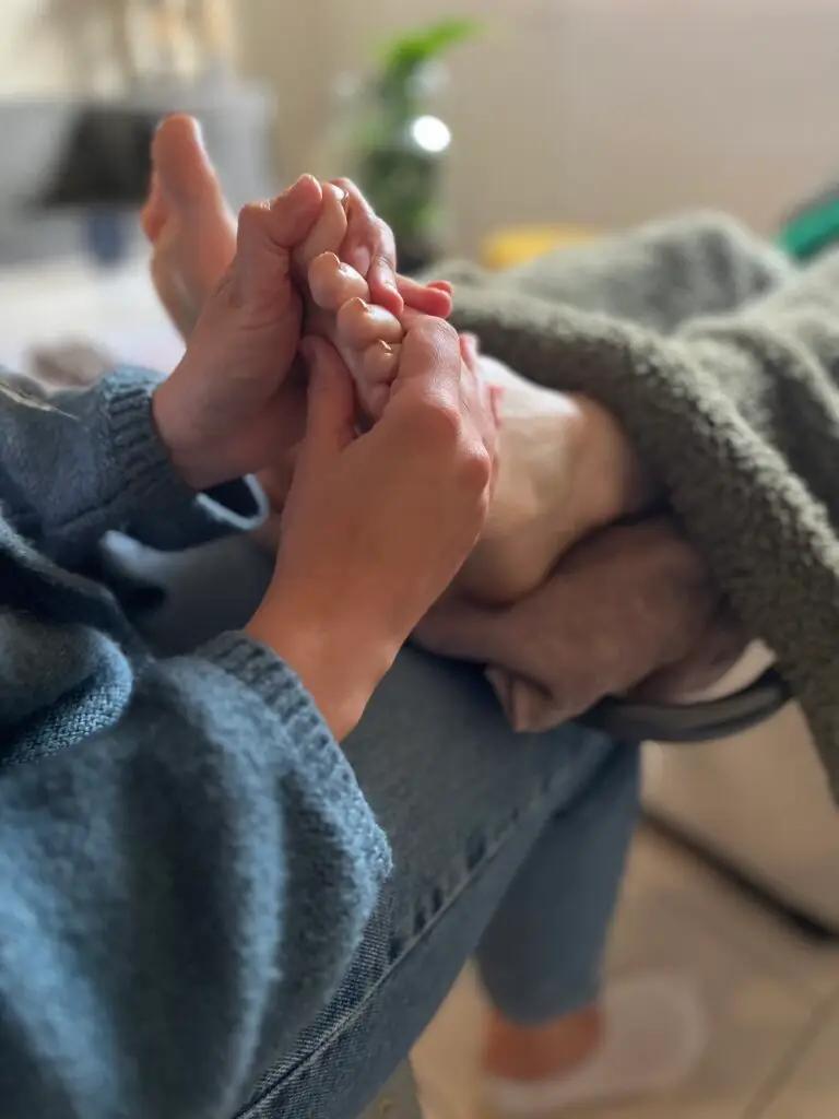 La réflexologie propose un moment de douceur, d’écoute et de reconnexion au corps, qui peut réellement améliorer leur qualité de vie. Elle offre une pause réconfortante, un temps rien que pour eux, où l’on prend soin de la personne dans sa globalité.